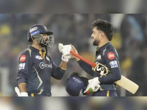 लेकिन उसके बाद डेविड मिलर ने टीम को एक गति प्रदान की और 26 गेंदों में 41 रन बना डाले। उससे भी बड़ी गति तब मिली जब आठवीं क्रमांक पर बल्लेबाजी करने गुजरा टाइटंस के ऑलराउंडर राशिद खान उतरे।
